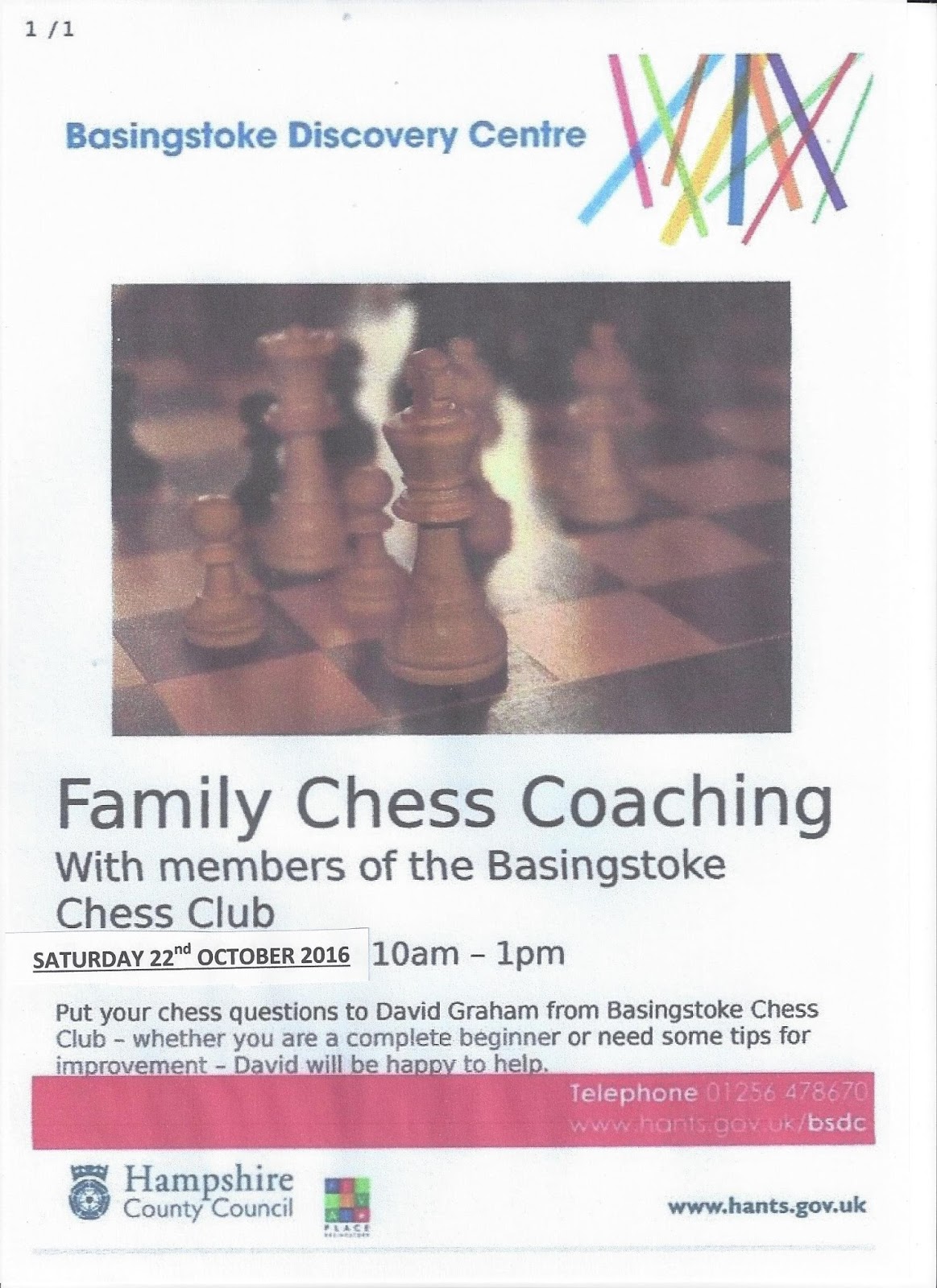This months Family Chess morning will be held at the Discovery Centre/Library